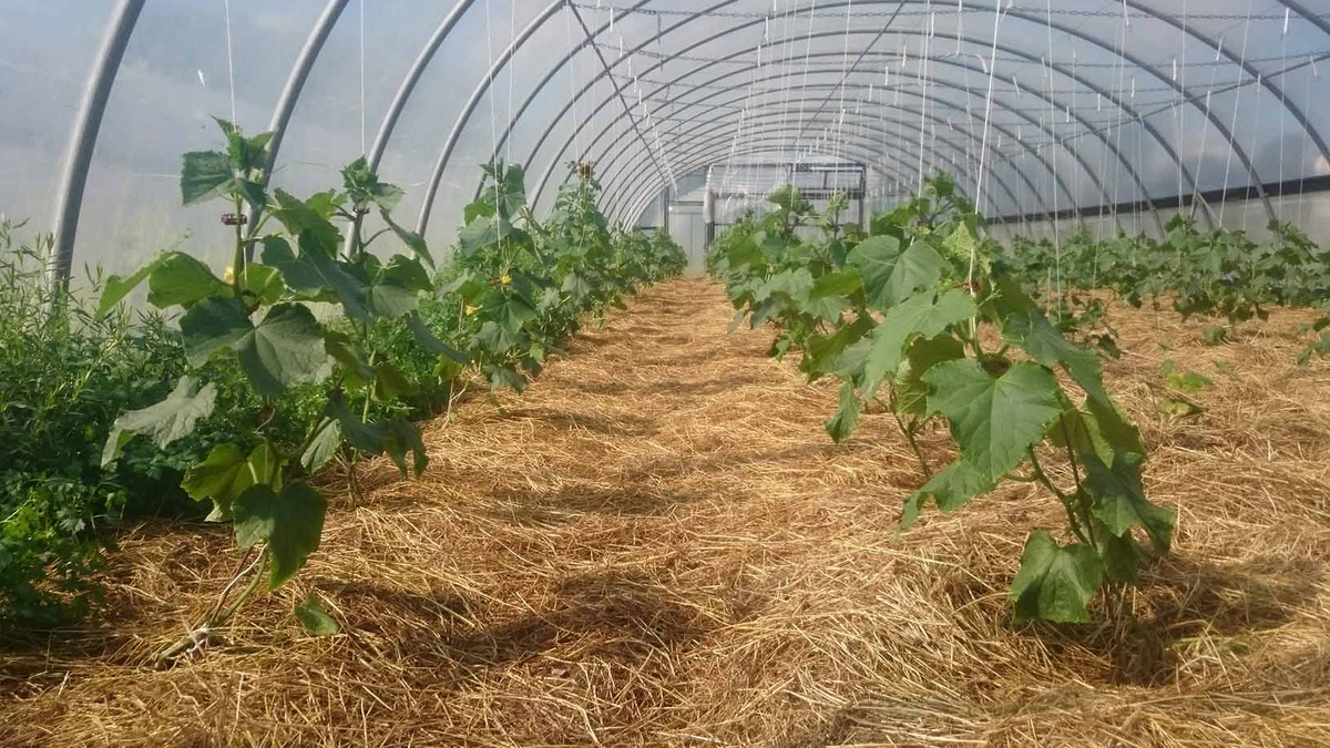 Im Gewächshaus bewährt sich die Schicht aus gehäckseltem Grünschnitt sehr gut. Die Tomaten wachsen kräftig und schnell. Das Unkraut ist kein Problem mehr.