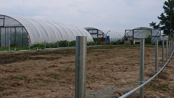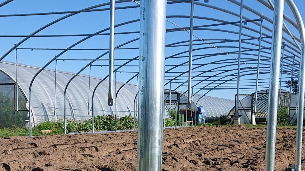 In diesem Jahr steht in der Gärtnerei ein größeres Bauprojekt an. Der Kundenstamm der Biokiste wächst und es sind nicht genügend Tomaten verfügbar. Die Winter- und Frühjahrskulturen wie zum Beispiel Spinat, Schnittsalat und Mangold reichen oft nicht für alle. Daher haben wir uns entschieden einen neuen Folientunnel zu bauen. Das neue Gewächshaus ist 30 Meter lang und 9,60 Meter breit.